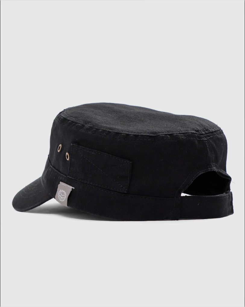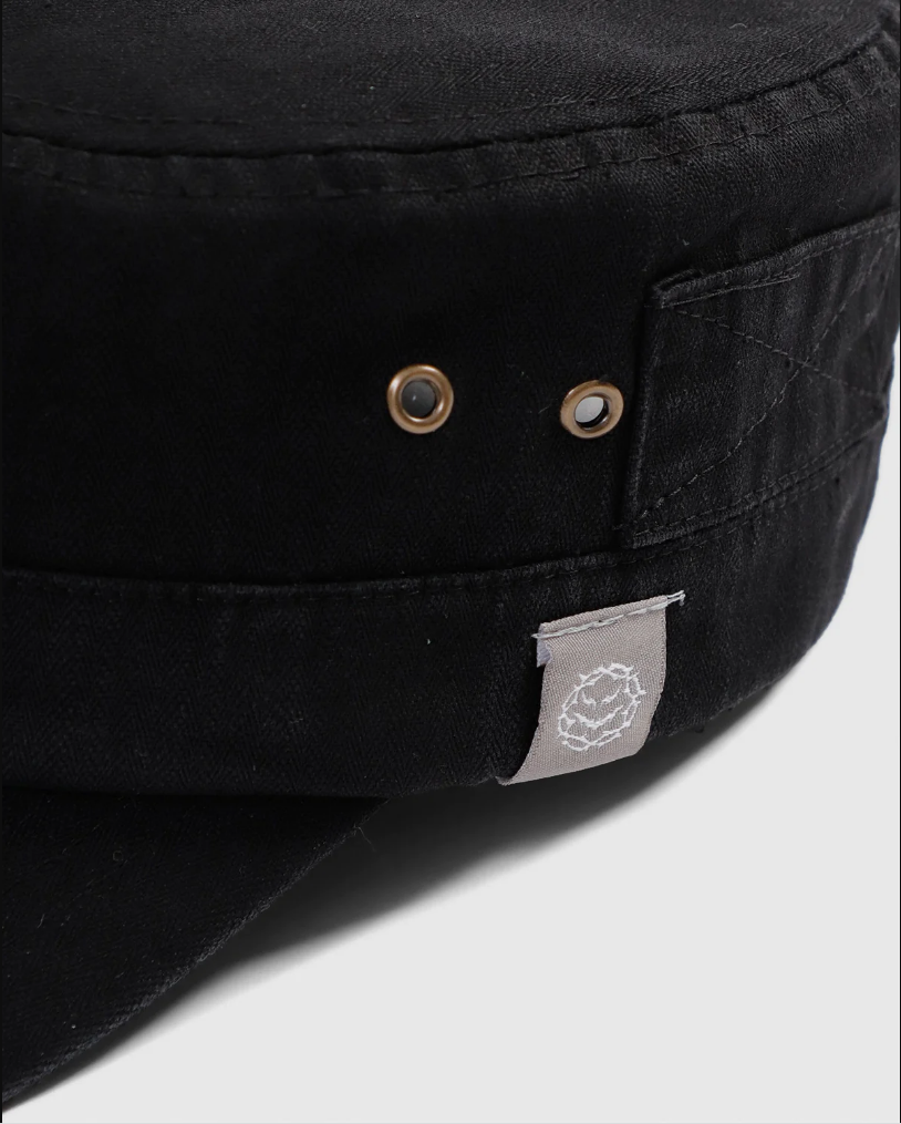 Curb Crawlers ‘Cadet’ Cap – Black Herringbone. Designed in Melbourne, Australia. Cadet Silhouette. Shallow, unconstructed fit. Sewn Patch Detailing. Woven Pip Logo Branding. Velcro Strapback.