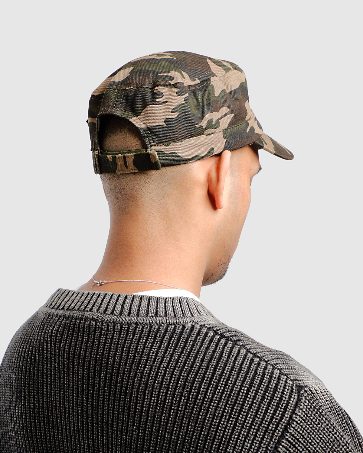 Curb Crawlers ‘Cadet’ Cap – Washed Camo. Designed in Melbourne, Australia. Cadet Silhouette. Shallow, unconstructed fit. Sewn Patch Detailing. Woven Pip Logo Branding. Velcro Strapback.